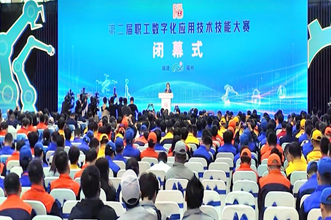 11月13日上午,第二届职工数字化应用技术技能大赛在福州海峡国际会展中心闭幕,84人分获5个工种的一、二、三等奖。当中华全国总工会副主席、书记处书记马璐,将五块金牌分别授予五位大赛冠军时,343人决赛、8000人备赛、300万人参赛、亿万职工观赛的第二届职工数字化应用技术技能大赛正式落幕。